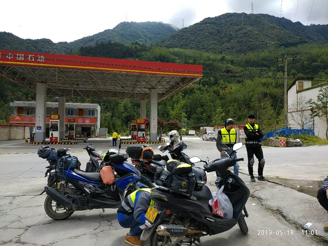 因泸定县加油站加油必须到派出所打证明,会耽搁时间,所以我们选择在未过二郎山山下的最后一个加油站加满油,这个加油站距离雅安80公里。