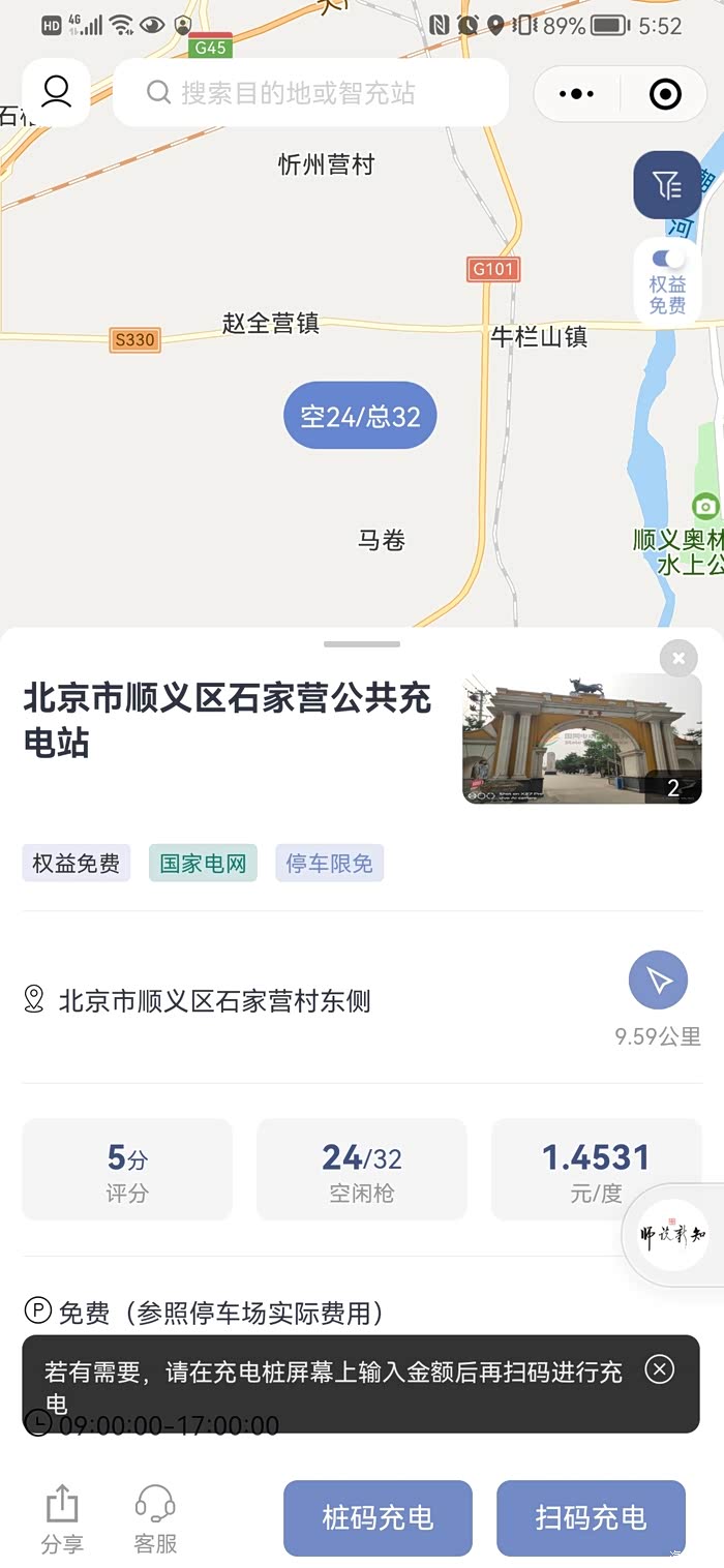 第三步:选择并导航到要去的权益免费充电站。