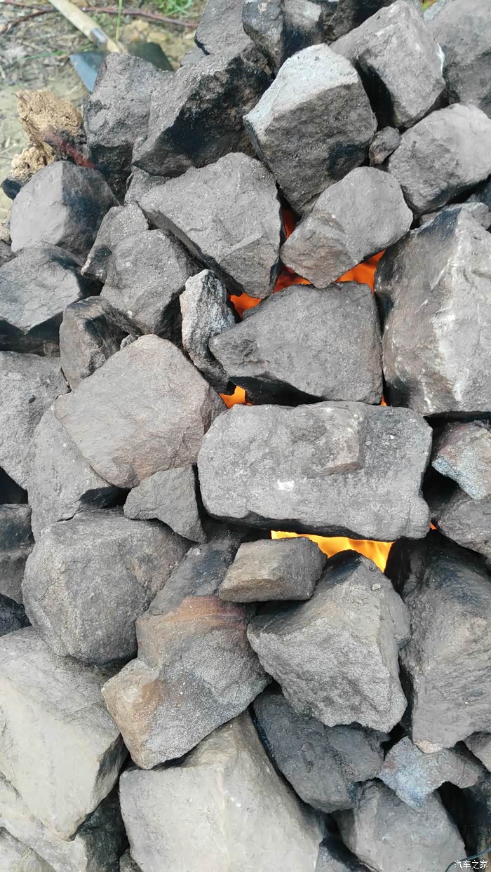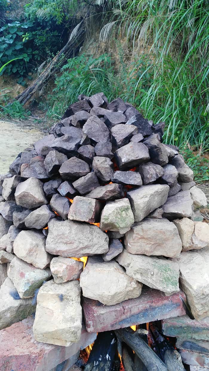 烧了一个小时左右,顶部石头已经有变化了,开始发红说明该准备食材了!