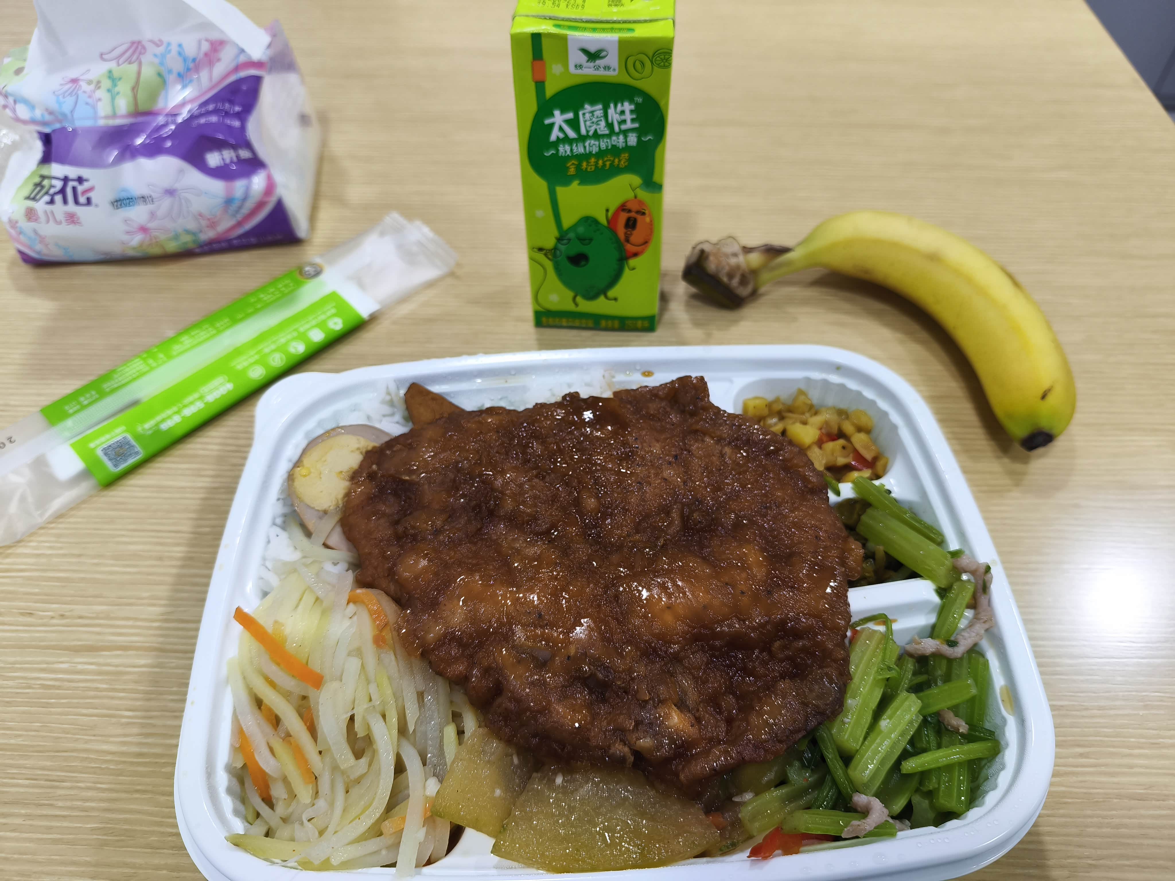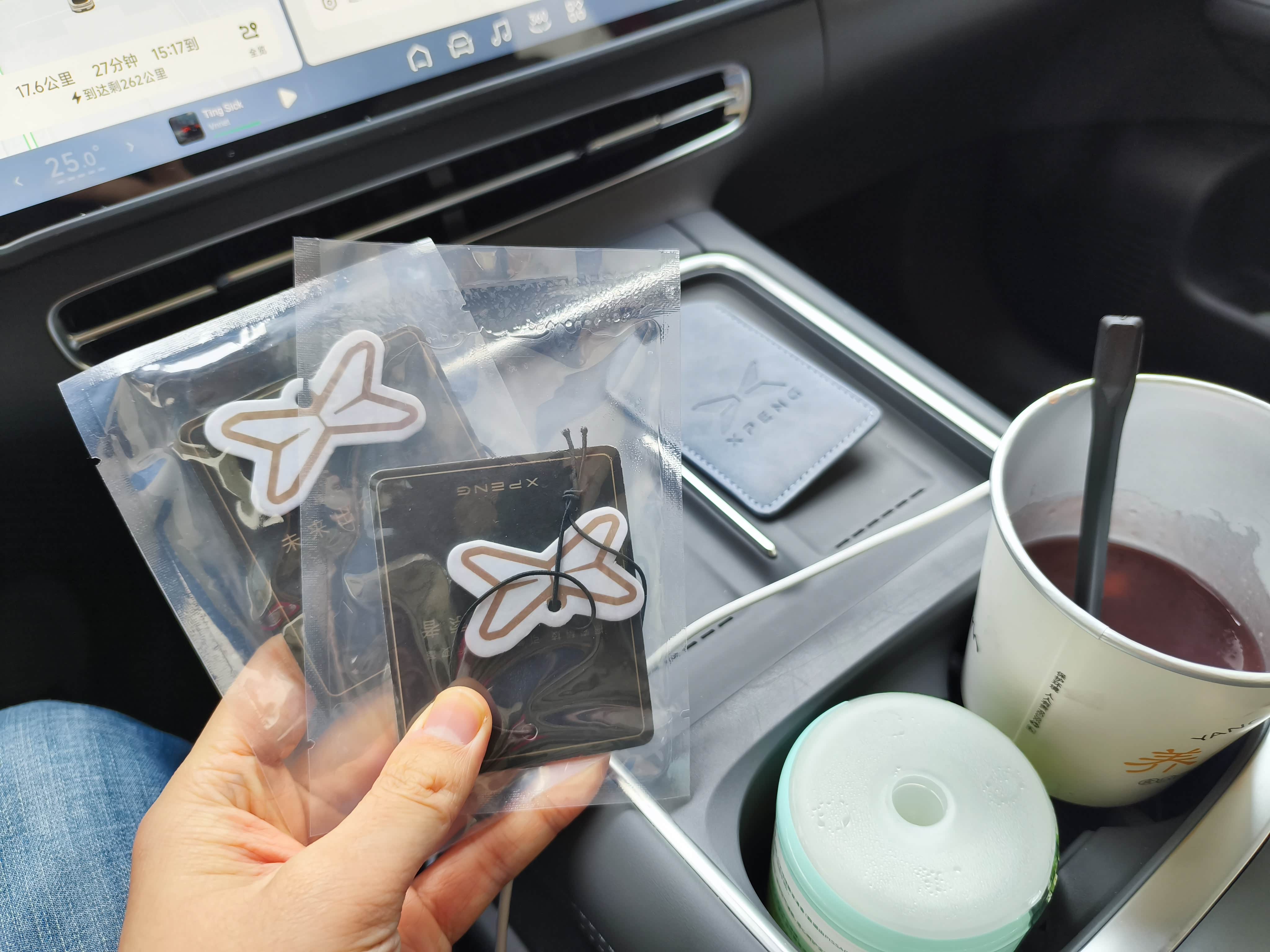这次保养正好赶上饭点,服务管家主动邀请我去客户休息区用餐。午餐是两荤两素的套餐和香蕉,味道还不错,休息区也一直提供免费的茶水和小零食。下午还贴心地准备了八宝粥当下午茶,细节做得很到位。临走时,工作人员还送了两个小鹏定制的香片,挺暖心的。