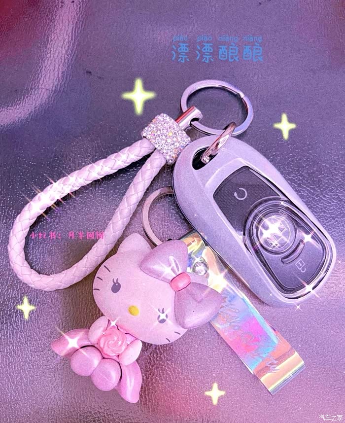 钥匙扣店铺:铁圣车品专营店质量超好,很多款式选择,我选的珍珠白色 PC 纳米智能款,加一个镶钻白色挂绳。