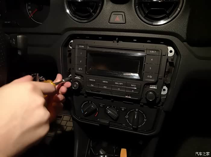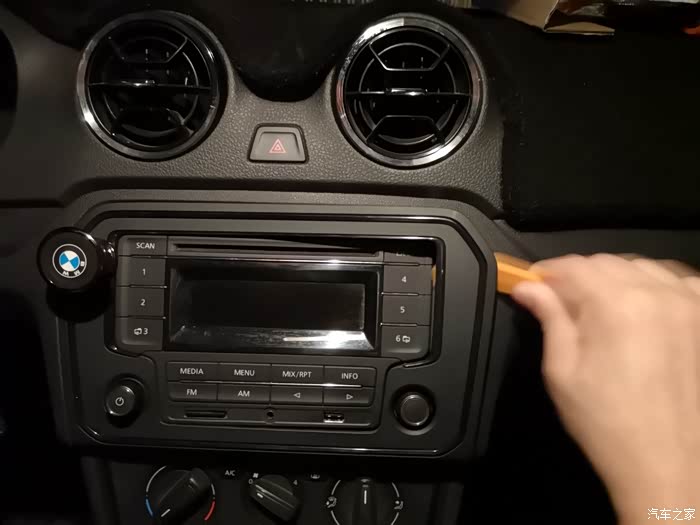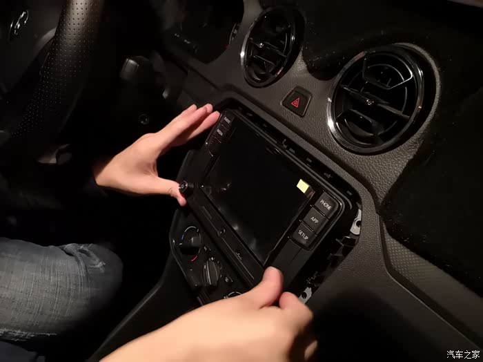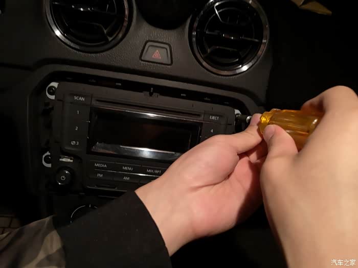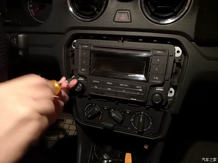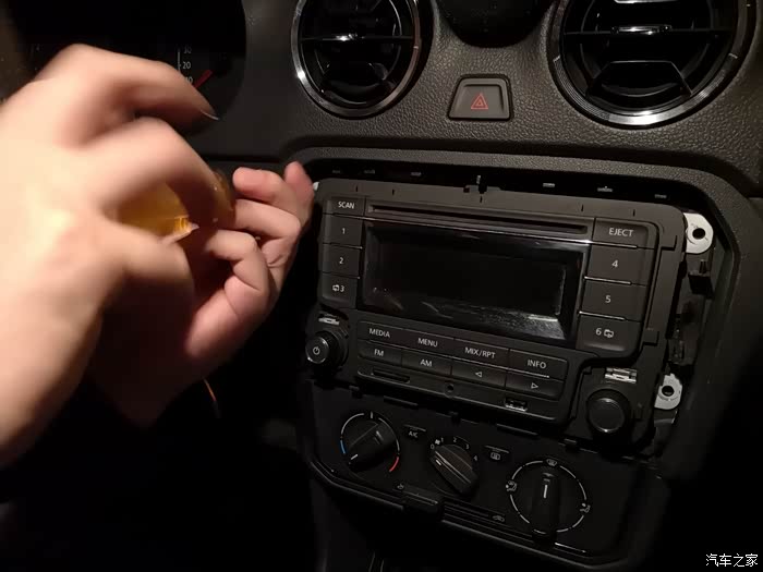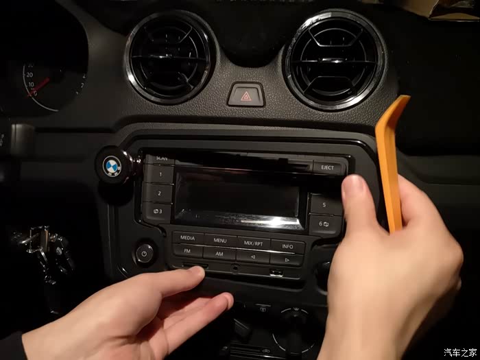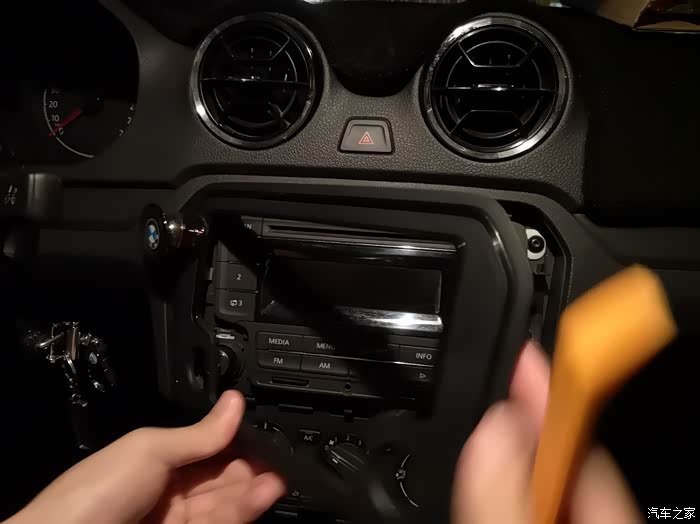 用翘板沿着原车CD面板的边缘往起撬,大点力没关系,一般人撬不坏,