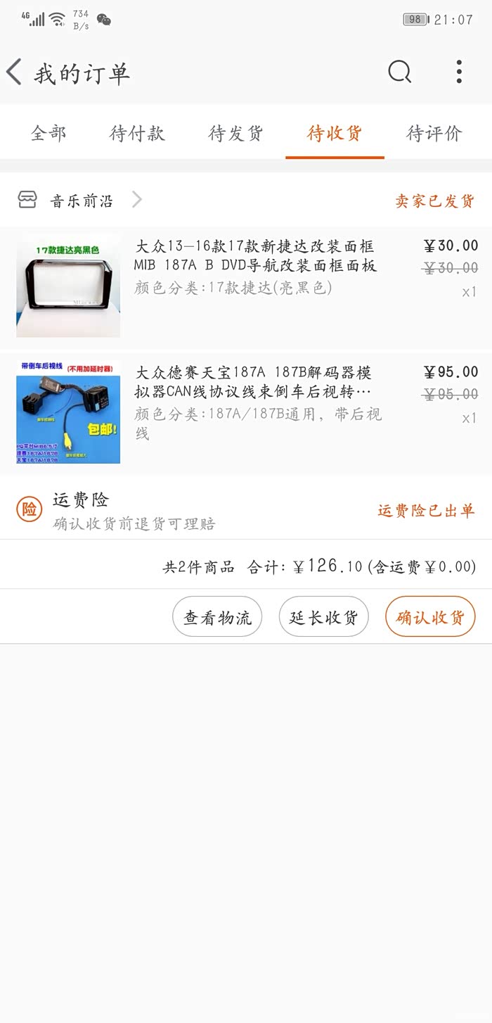 同事买车,17款速腾四儿子给换了安卓大屏导航,竟然没给原车的mib,果断找到销售要回来,是德赛西威的187b,看了论坛说可以加装到我的捷达上,所以拿回来就各种逛论坛,看教程,当天晚上某宝买的解码器和面板