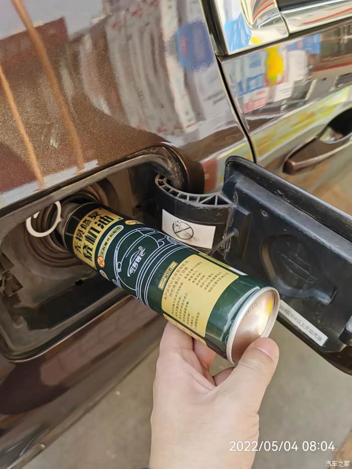 连续往空油箱加入三瓶修复剂,然后再加满油,利用油枪的出油压力使修复剂与汽油充分混合均匀。加油小哥一脸疑惑,第一次见加三瓶添加剂的车主。
