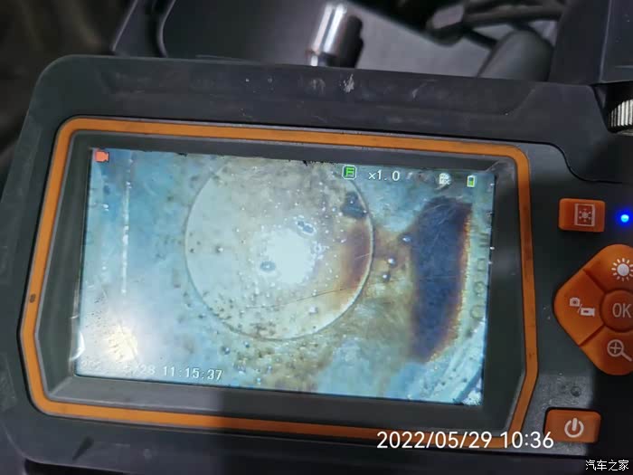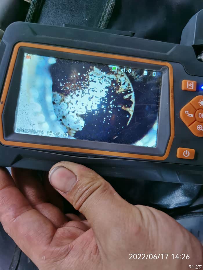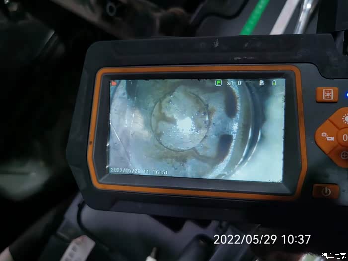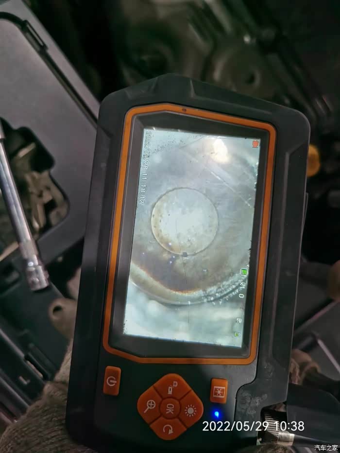 换完轮胎,顺带让其检查四个缸。4个活塞积碳清理的干干净净。请忽略内窥镜的时间(内窥镜显示的是5月28日,修理厂未重新校对时间)。