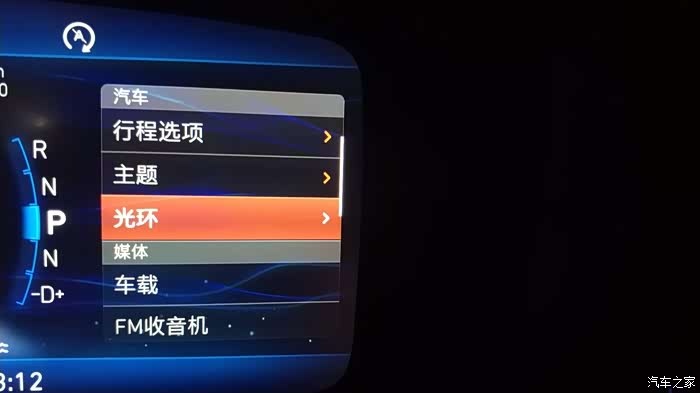 按击音量滚轮,进入汽车选项,滚到光环栏