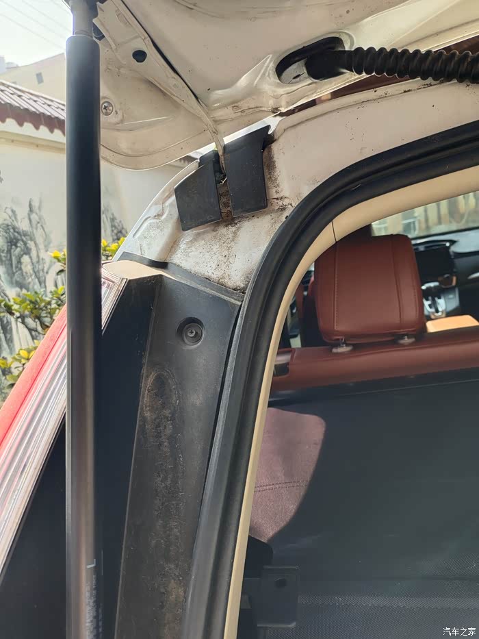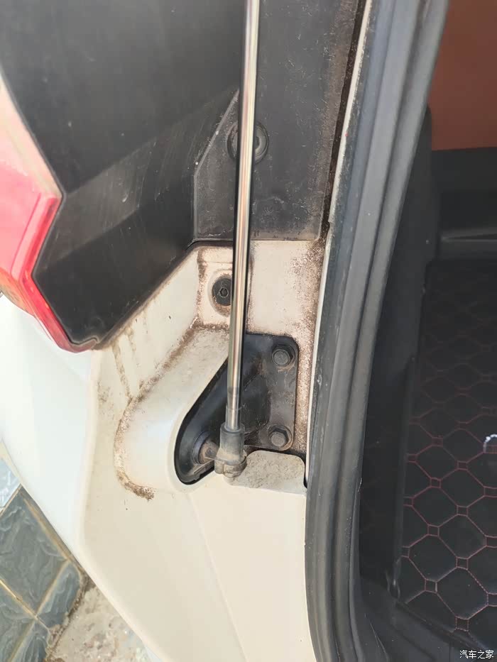 后备箱门打开,上面非常多脏东西,平时从来洗不到