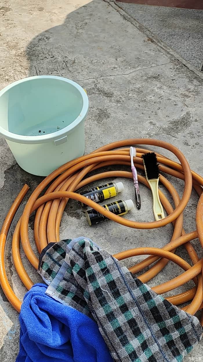 准备好洗车工具:冲水管、两条毛巾(抹布)、牙刷(用来刷洗小缝隙)、鞋刷、小水盆(漂洗毛巾)、洗车精(具有除油效果,)、吸尘器、长臂拖把。