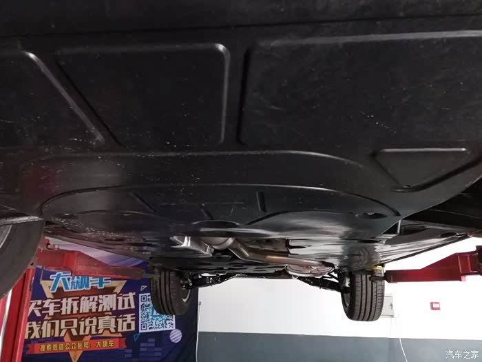 不过途昂这台车的底盘也并不是一无是处,比如这台途昂是一台四驱版,但是你从底盘却看不到传动轴,只能看到后方有一个分动箱。其实这台车为了保护传动轴不受损坏,将其隐藏到了隔热板上方。这一点还是比较值得称道的。