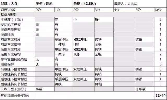 途昂拆车底盘评分