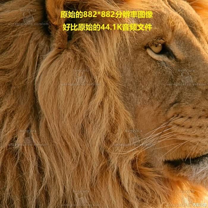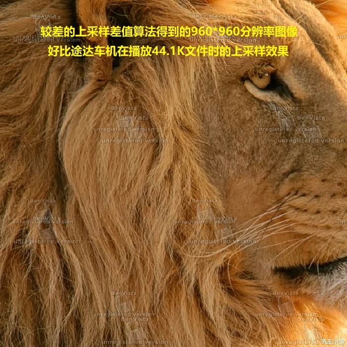 首先是较差算法的图像(好比途达车机自身)放大3倍后狮子胡须的效果: