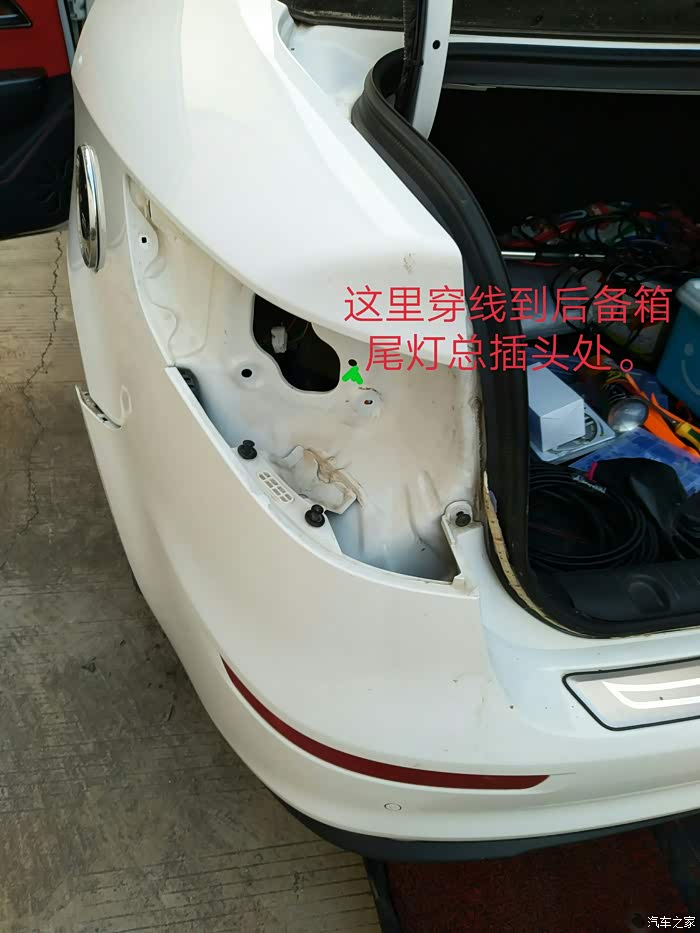 真怕压坏线的话也可以从后备箱大家放千斤顶的地方,有个过线的孔。详细参照李小东东哥安装后杠倒车辅助灯带的帖子