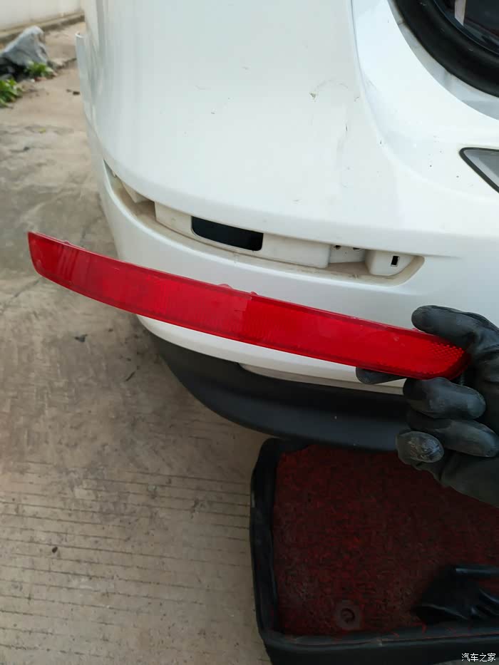 拆完内衬螺丝和尾灯以及尾灯下面的三颗螺丝,基本就可以有一定的空间拆下原车反光条了,感觉没必要把后杠全拆下来。