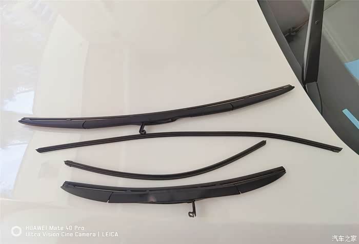 为了防止更换时手忙脚乱,弄不清上下 , 雨刷与胶条都是摆放到一起的,上下对称 。