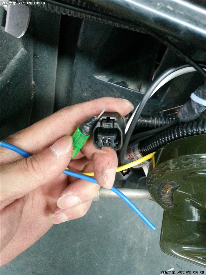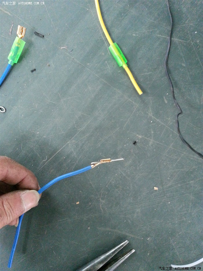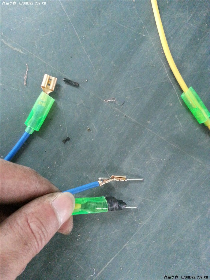 动手,找合适的能插进原车接头那个孔的东西,找了个很硬的钢丝代替