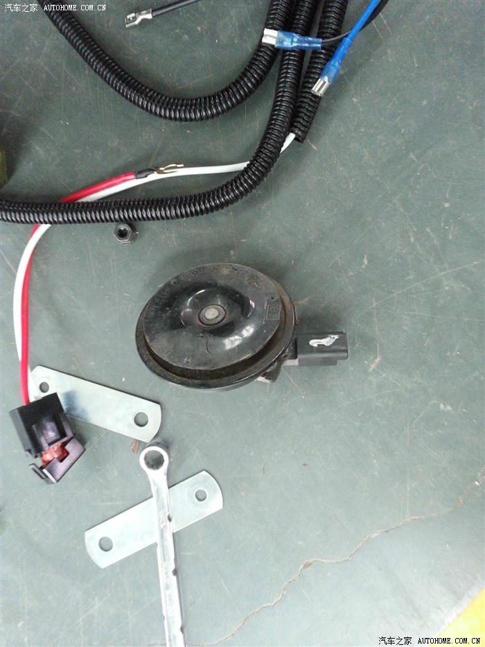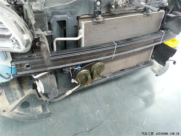 其实老早就在网上买好了蜗牛喇叭一对,没时间装,主要是301换喇叭太麻烦了,得整个前保险杠拆下来才可以动手。也没打算去修车店装,因为要拆整个保险杠应该会收费比较贵,喇叭才几十块钱。一会工钱得1~2百多划不来啊。于是一直在等机会。。终于。。悲催的事情发生了,车子被朋友借去追人家尾了,虽然不严重,但还是找了保险,最后还是要修下,修的话肯定是要拆保险杠的,然后到了4S,修车的时候问他们能不能帮忙换个喇叭。。经过重重上报之后,答曰:不是原厂的,不换,换你这种喇叭必须要破线的。 无奈,自由自己动手了,这你们总管不着了吧。然后趁他们拆了保险杠就开始动手了。上图