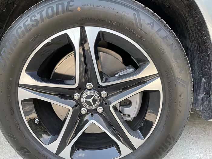 配的轮胎是普利司通的ALENZA 001 RFT防爆胎,275/50/R20/113W,比燃油版GLE的规格不一样,应该是车更重的因素。现在这款轮胎电商上买不到,同规格能买到用于替代的有一款米其林LS3 275/50/R20/113W ZP