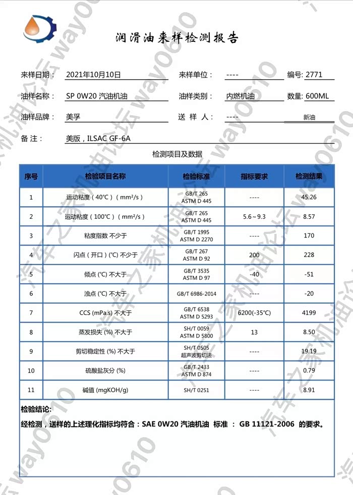 检测只对样品负责,样品由论坛车友“我心永恒900”提供,一升装未开封新油。