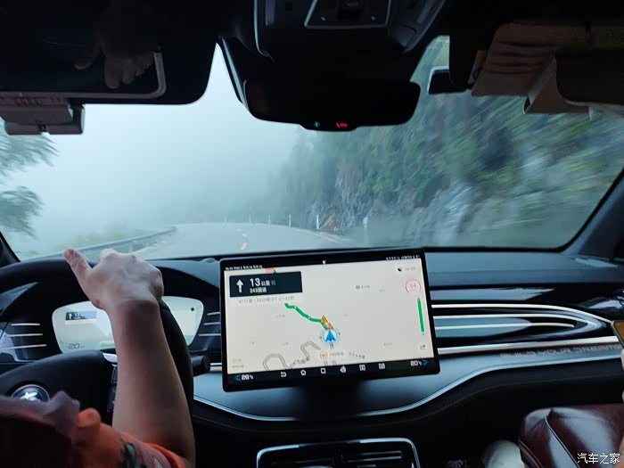 汽车行驶在去天峨的雾气朦胧的盘山公路上