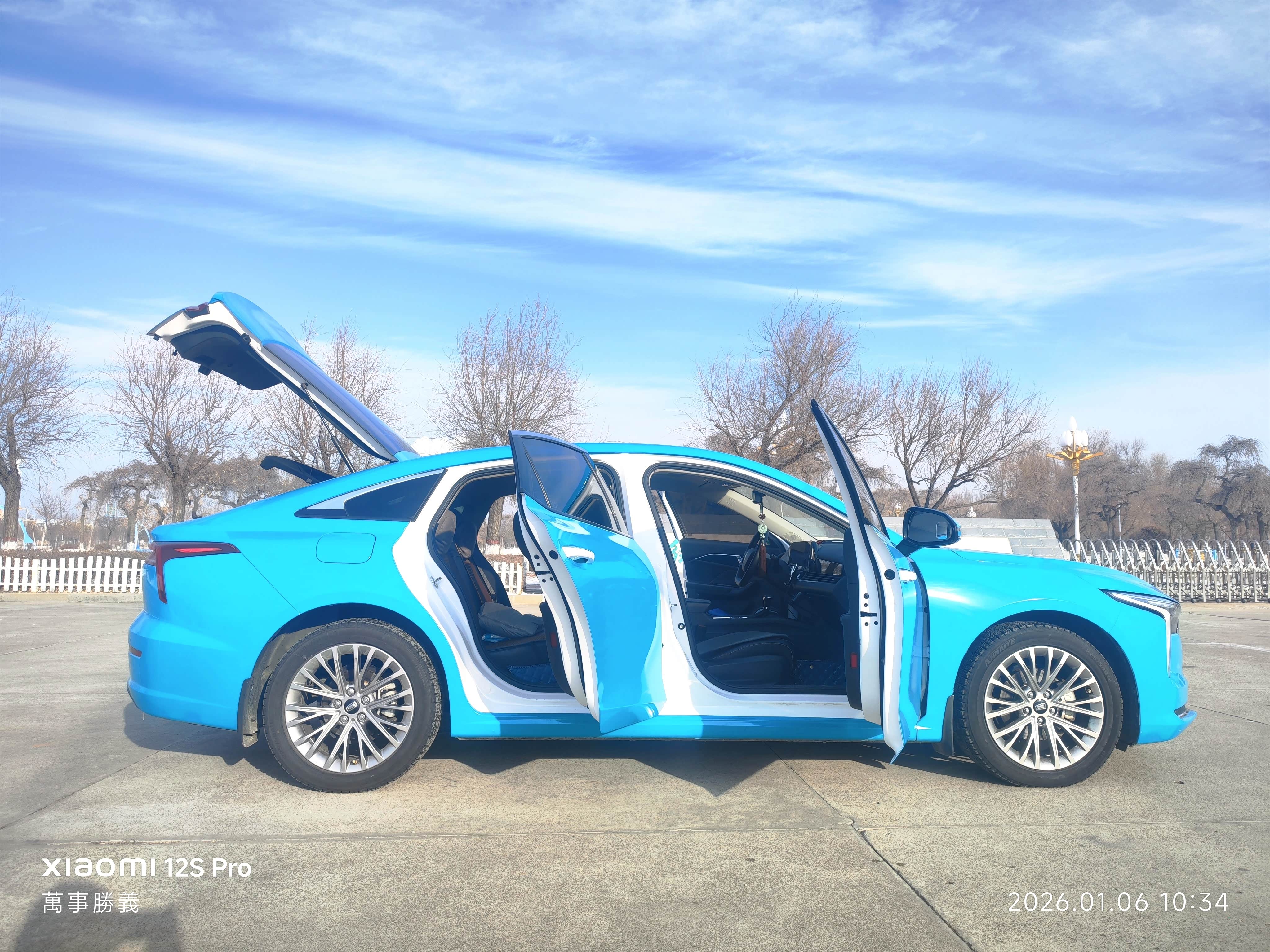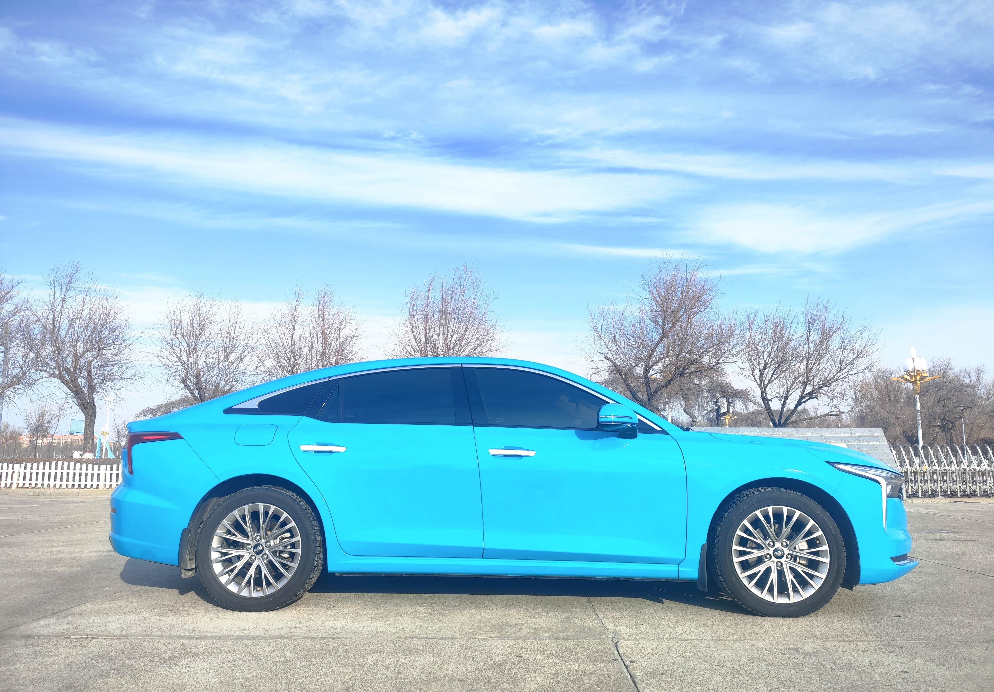 原车为珍珠白色,后来一次偶然的机会贴膜改色成了现在的水晶亮光迈阿密蓝,使得整车看起来更加靓丽。