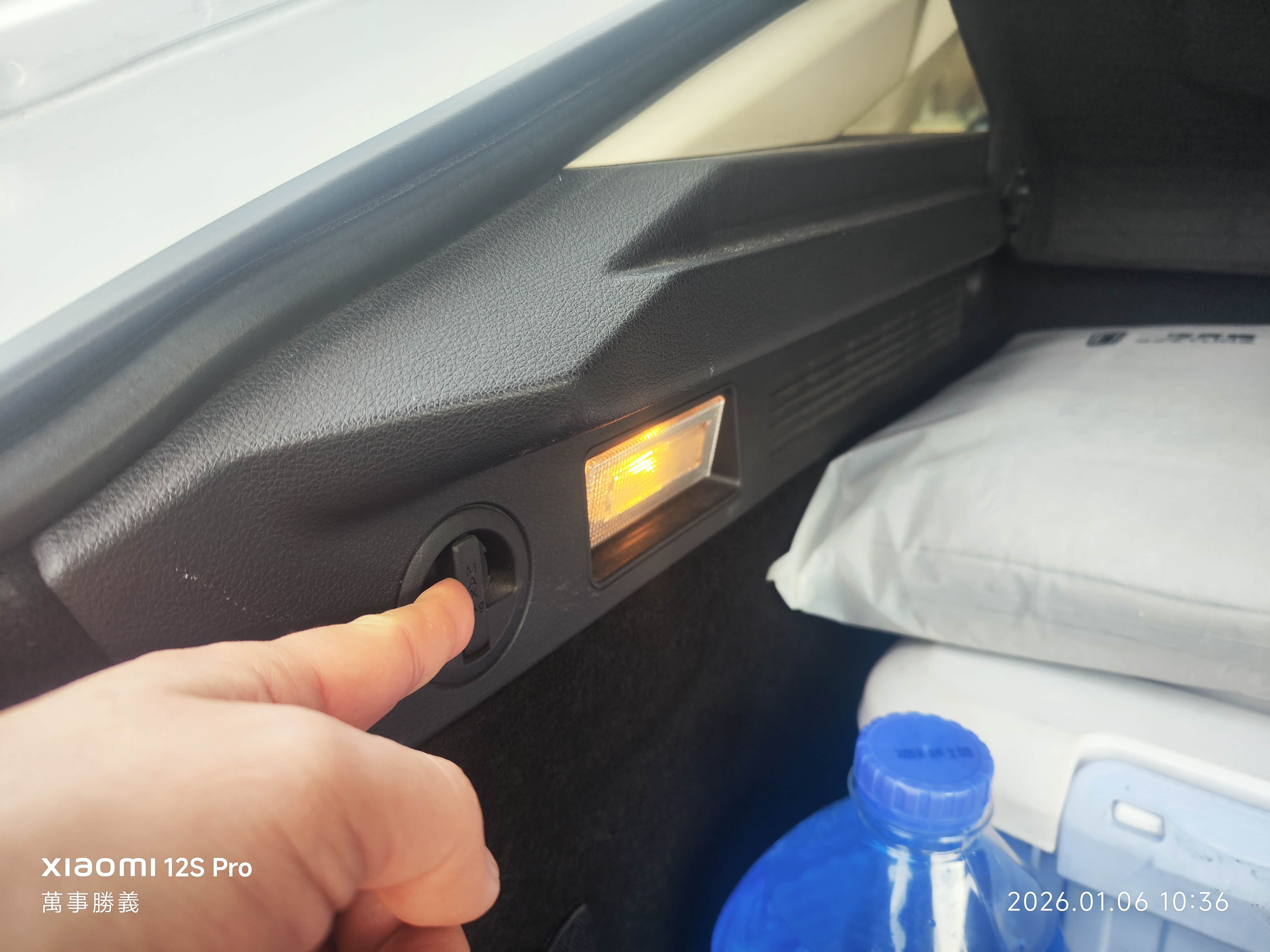 备箱左侧设计了一个独立挂钩,前方为照明灯,不过卤素灯泡亮度实在有限。