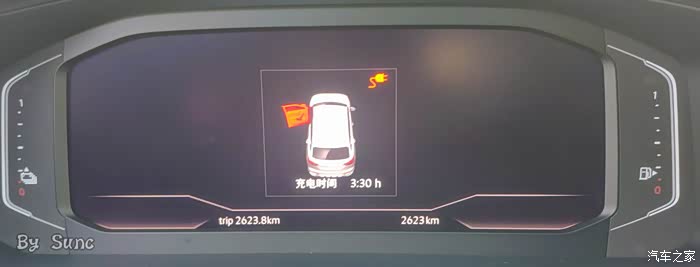 充满电后,今天又开了一会,行驶里程为2623.8,较上一次充满后行驶了20公里,显示需要3.5小时才能补满电。