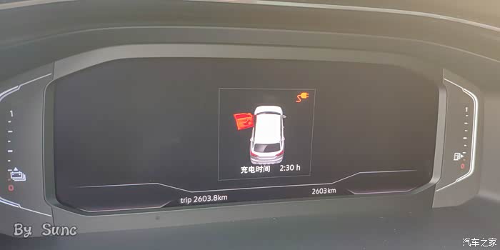插上电之后,显示需要2.5小时充满,此时公里数为2603.8,记下这个值,后面再来算笔能耗账。