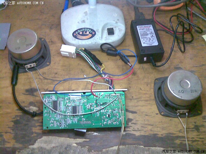 送好小孩上学,赶紧把收音机装上,这个机器有4路喇叭输出的,在输出的线焊上4根线,方便以后再接2个音箱。
