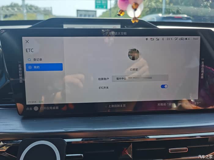 自己就是没有中信银行卡。最终花了几分钟就将自己一张非中信银行卡绑定到中信银行电子账号中,向中信银行电子账号充了点钱后,就可以顺利的开启ETC功能了。签约中信银行扣取的通行费好像还有95%左右的优惠呢,当然这个车载ETC也是自带关闭功能,可以实现如果暂时不需要ETC时,可以单独关闭ETC功能的操作。欧尚Z6IDD全车型自带ETC真的是省心省事省时,为欧尚Z6IDD的这个功能点赞。