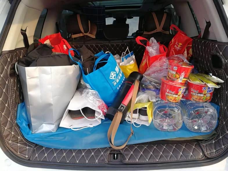 后备箱有点乱,装的点路上吃的东西,这个时候就看出出来空间大的好处了,其实后备箱装了很多东西,但是看起来还空荡荡的