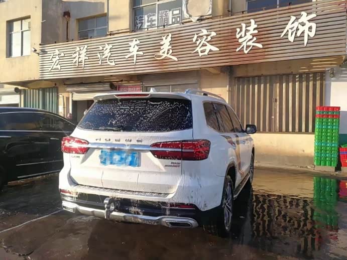 经过一白天加一夜的颠簸,终于到了,行驶在蓬莱的路上了,找个地方洗洗车
