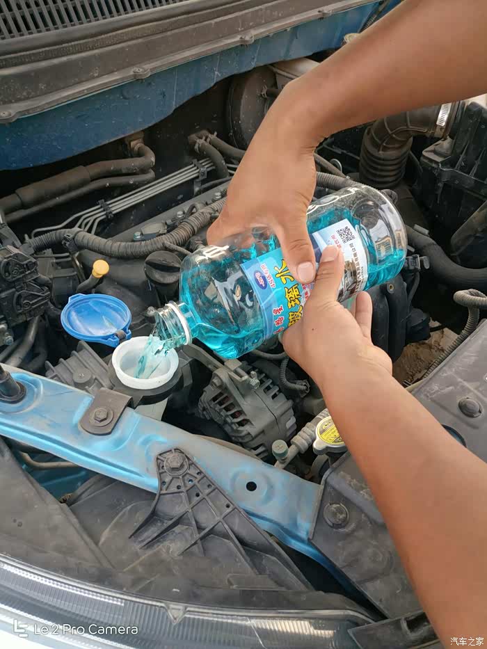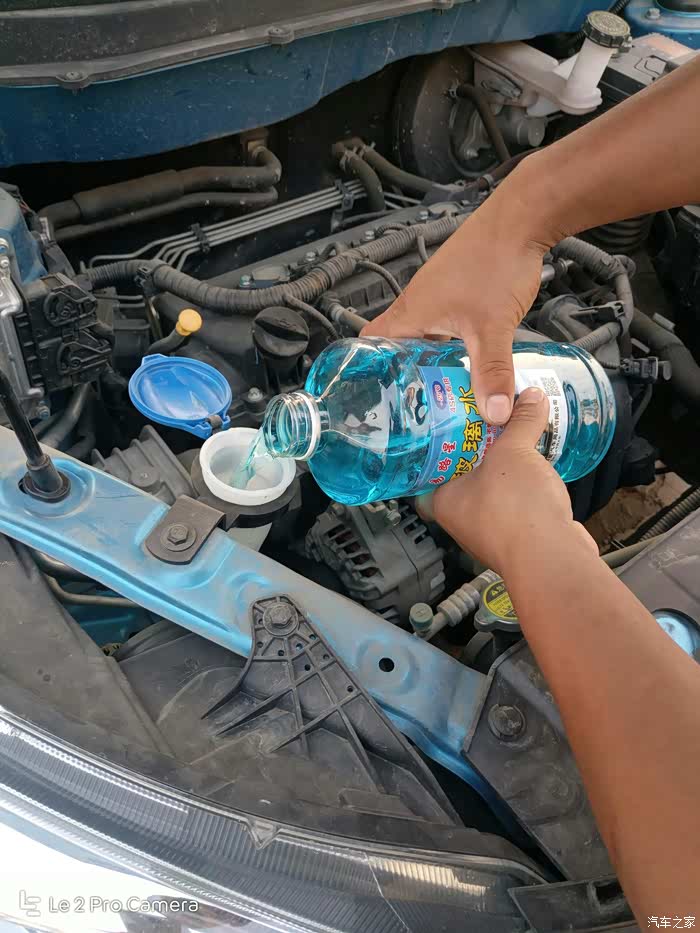 开始倒玻璃水了,很简单。相比倒机油,这个明显简单的太多了。