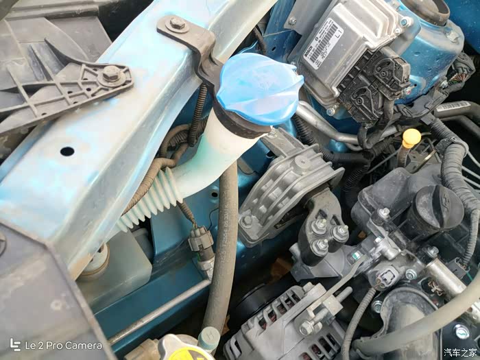 看见这个蓝色盖子了吗?这个就是加玻璃水的地方了,依然很多灰尘啊
