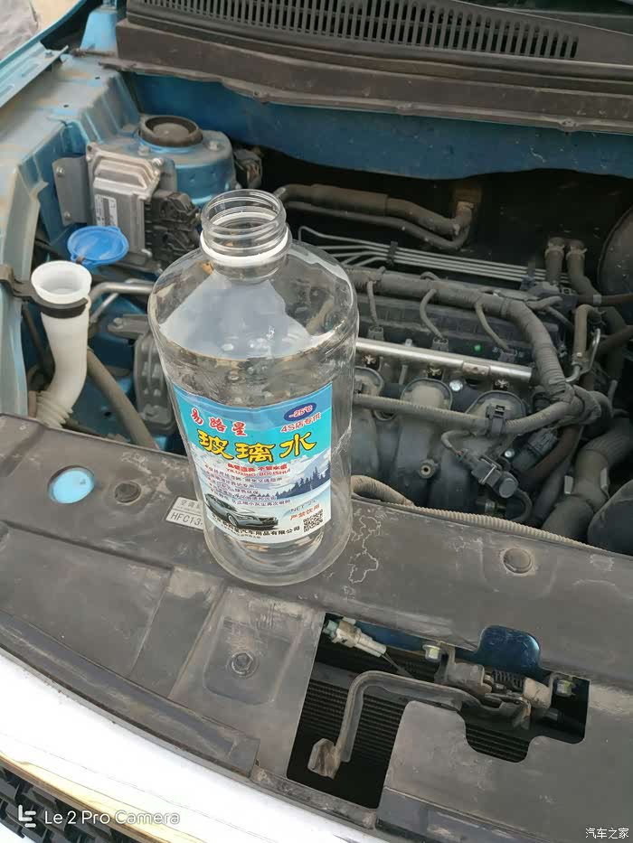 第二瓶加了这么多。。。这个时候看见白色管子里面有蓝色玻璃水了。好了,就加这么多。。。