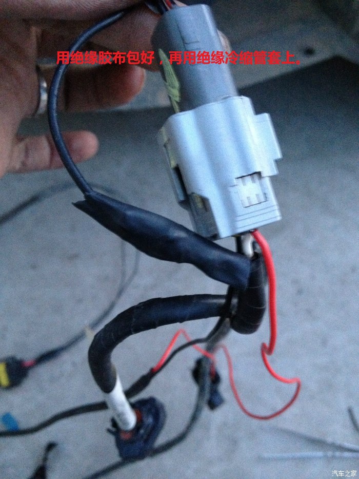 少拍了一张。这加装线束,我把它和原车线困一起来了,还用绝缘热缩管套起来。