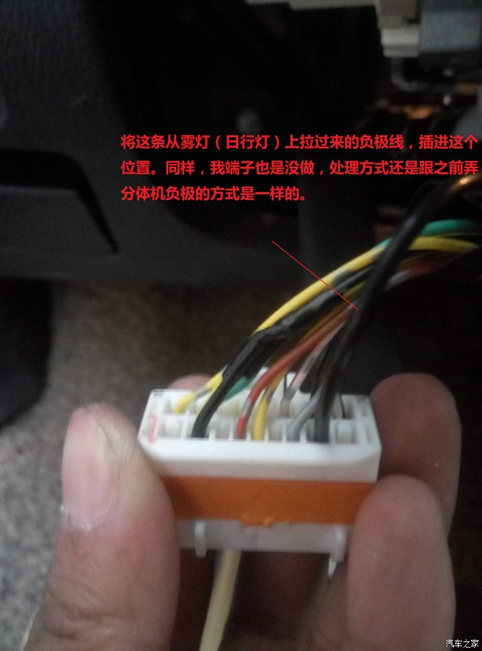 取下插头,将加装的雾灯负极线插进如上图位置。也就是后雾灯的右边。方法还是一样,没有端子,去皮之后传过去,折一下,拉一下,镊子处理一下,效果依旧杠杠。