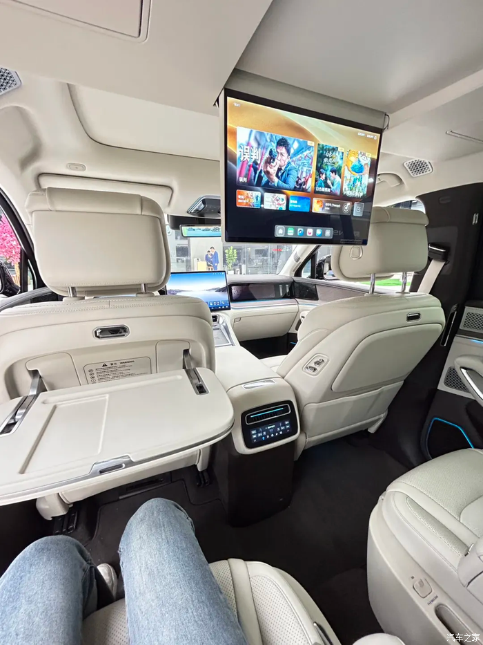座椅的舒适度也没话说。摸起来很软和,而且材料也很细腻。主驾能根据习惯驾驶姿势调节,不用手动调节了;我和妈妈都进去试了,座椅角度调节都不一样,而且跳的很合适;座椅能按摩、加热,开久了再也不怕腰酸背痛。中排也有零重力座椅,我特意让妈妈试了试,试过后她和我说坐上去感觉整个人很放松,再加上座椅的按摩功能,不像是坐在车里,很享受。而且三排座椅调节起来特别方便,把后排座椅放倒,就能腾出很大的空间放帐篷、野餐垫,在车内就能野餐。