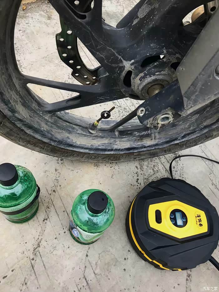 快回到家了居然扎胎了...赶紧给灌自补液