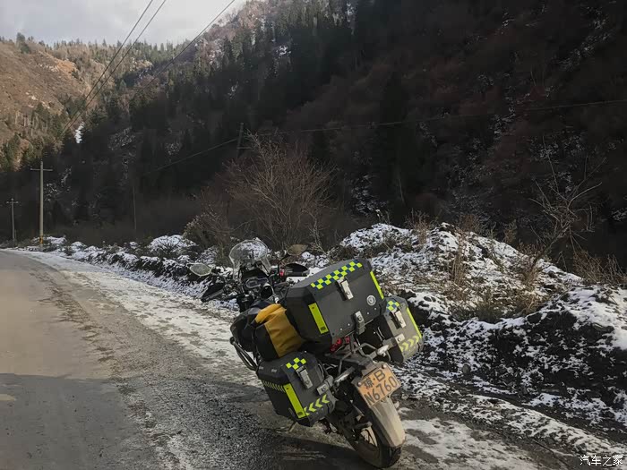 这是快到甘南扎尕那的路边。山背阴处还有积雪。作为一个没见过雪的海南人当然是停车拍照啦