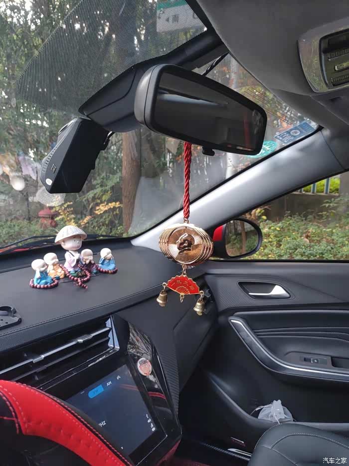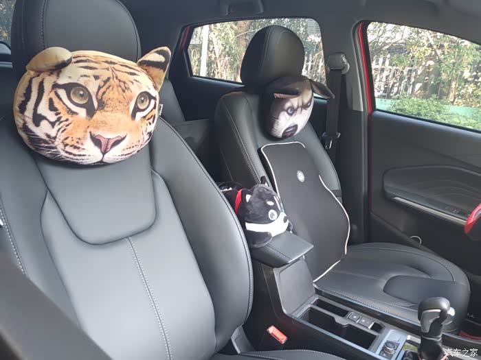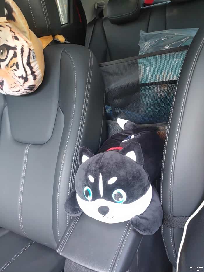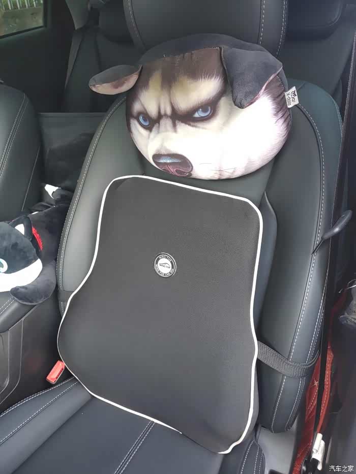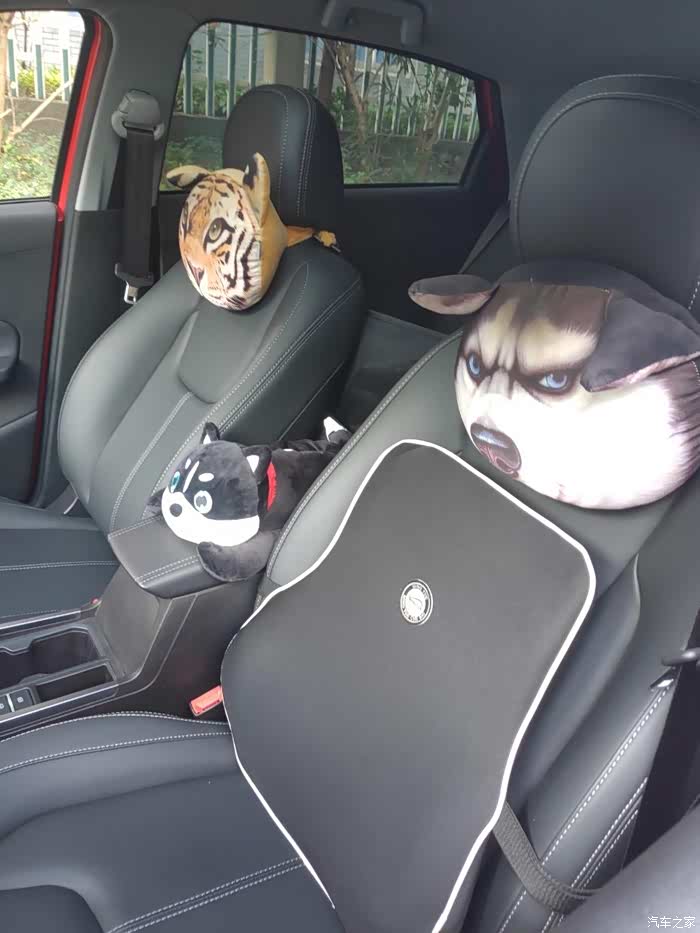 两只原先车的头枕,中间的小狗是新购买的,你知道是干什么作用的吗?