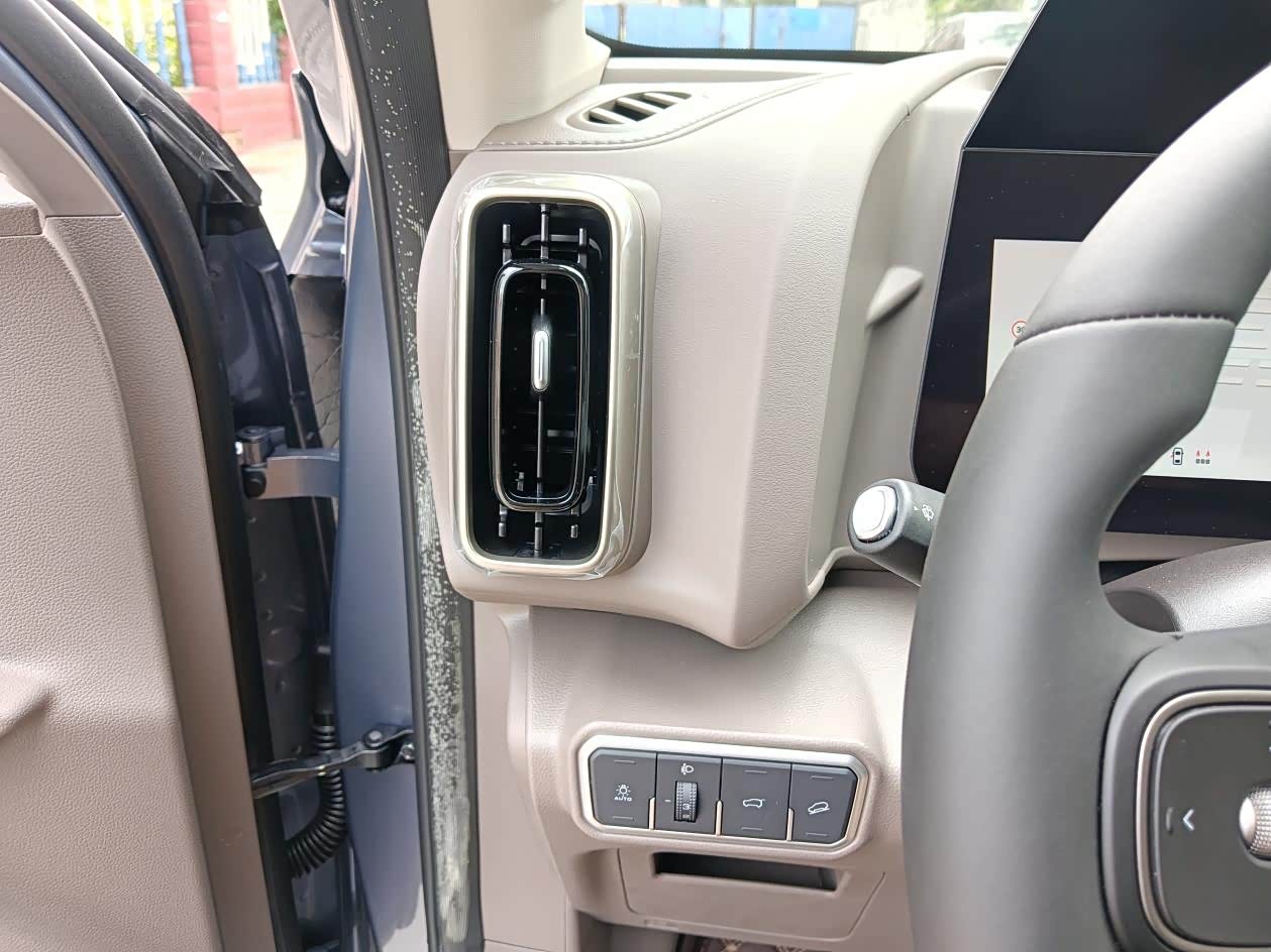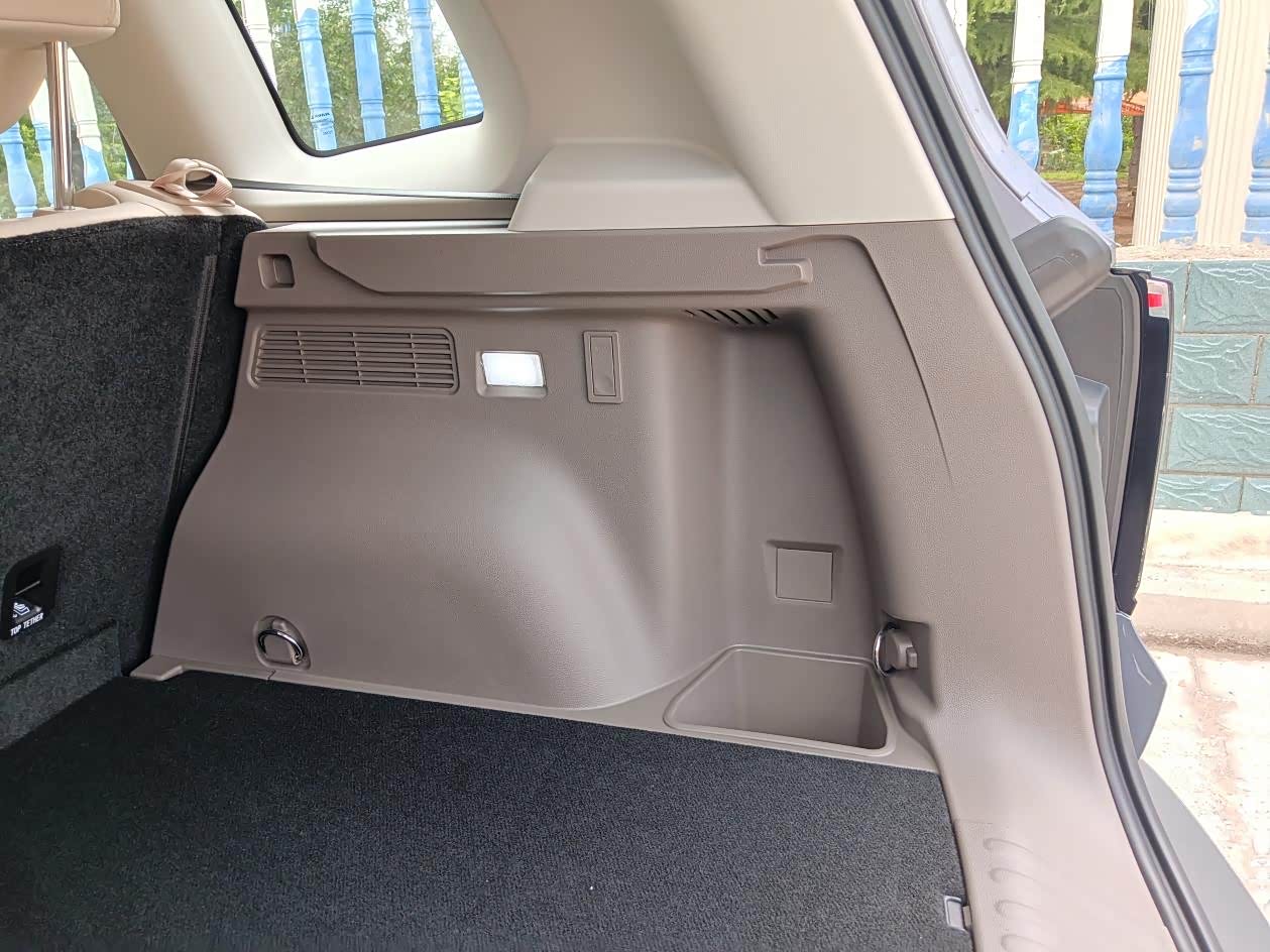 拉开车门坐进去,方向盘变成双辐的平底设计,看着挺运动的,底下不挡腿。最让我意外的是换挡杆没了!改成了怀挡,就在方向盘后面拨一下就行,开始可能不习惯,但用会儿就顺手了,我主要试了试动力,油门踩下去劲儿挺足,超车爬坡都挺有信心。变速箱换挡也平顺,没啥顿挫感。重点是这个四驱系统,我就在场地里简单走了走非铺装路,感觉底盘挺整,过个小坑小坎儿滤震不错,车身也不晃悠,最小离地间隙20公分,一般的烂路应该难不倒它。