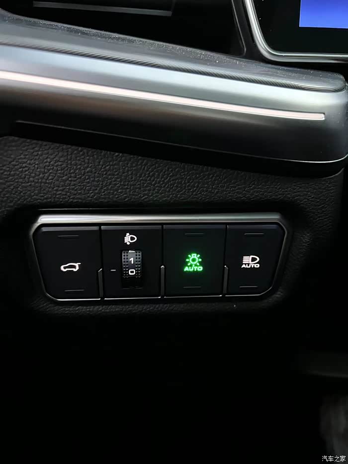 车内后备箱按键简单,大灯灯光调上下,0是最高的,3蛮低,建议大家还是0吧,女生开车一般都会忘记开灯光,按第三个车自己就开大灯了,再也不用担心忘记开大灯这个问题,旁边就是雾灯,大雾天气一定要记得开哦
