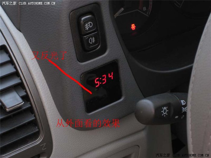 看到图片大家应该知道是什么了吧。电子钟是淘宝买的摩托车改装用的LED电子钟,盖板就是原车的装饰盖板。