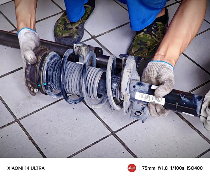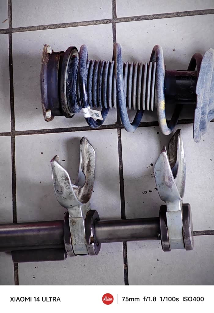 两根减震器平放于地,准备更换压力轴承了😂