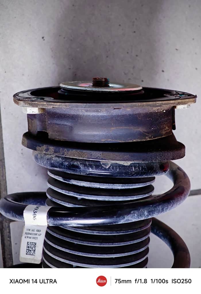 跟接待人员描述了一下大白的症状,他也有些拿不准,马上请来资深老师傅来断这疑难杂症。老师傅上耳朵一听,马上就判断出是两侧前轮减震器顶端的压力轴承出了问题,解决方法就是更换这两个轴承。那么是什么原因造成压力轴承损坏的呢?我想了一下,可能是去年我们这边因洪灾而断路,以致大白走了半年多的石子烂路造成的,看来那段时间对爱车造成的影响不止是轮胎和空滤,减震器也有损伤😞