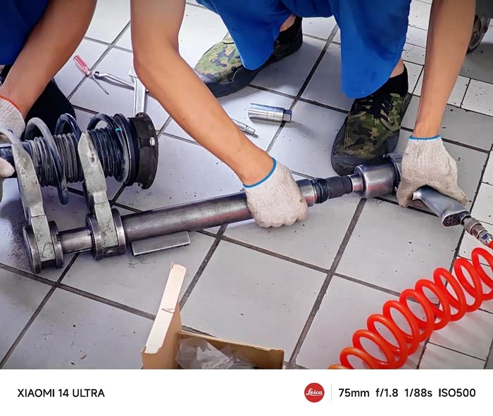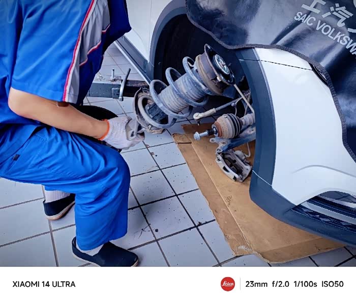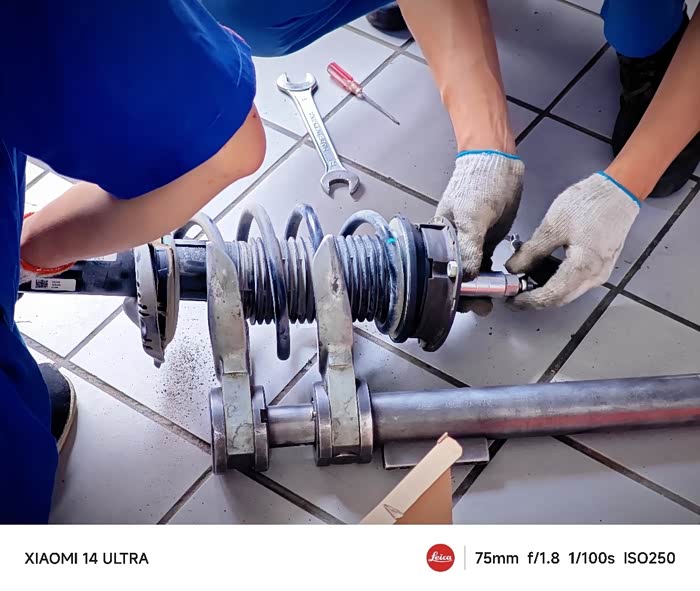 装回悬挂一系列连杆,两侧同时进行,两位技师小哥手脚麻利,经验丰富,为他俩点个赞👍🏻