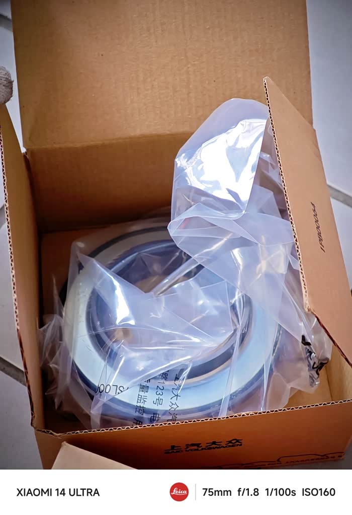 这是全新的压力轴承配件,今天就是更换它。但令我没有想到的是,虽只更换这么两个小小的轴承,竟然要大动干戈,需要拆卸两侧前轮减震器,这可真是小毛病动了大手术