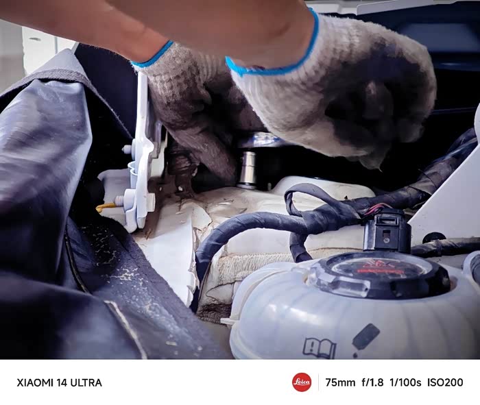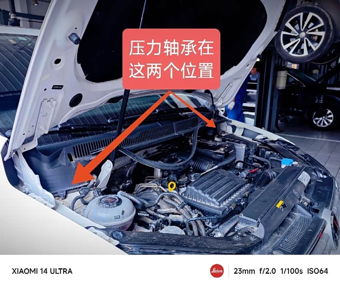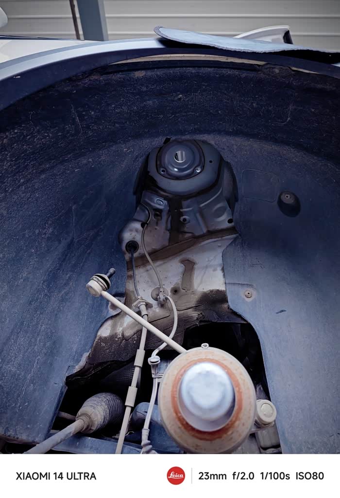 压力轴承位于两侧前轮减震器上方,要将两个减震器拆出来更换,说实话拆之前我都不知道要动这么大手术。对了,还要拆除雨刷臂和挡水板