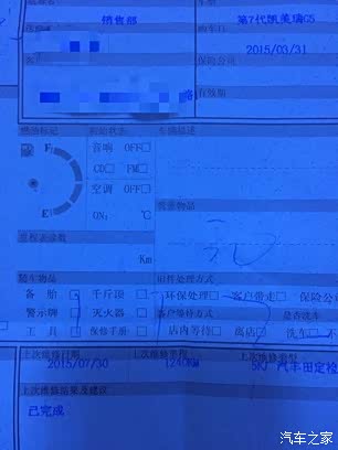 我的车是2.0g领先,前两天开车出去,不小心碾到了路上的杂物,飞溅起来划伤了侧面车漆,由于昨天有事就今天才报保险,保险来后让到4s店补漆。到4s店给开了维修施工单,这时我突然发现了问题,我的车出厂日期是2015年3月26日,我是2015年7月交了订金,2015年8月5日提的车,4s开的施工单显示我的购车日期是2015年3月31日,同时显示我的车在2015年7月30日有一次维修记录,行驶里程为1240公里,维修类型为5k广汽丰田定检,但是我的车现在总里程才2873km。我现在怀疑4s店把二手车当新车卖给了我,但是我又不懂施工单上的维修记录到底代表什么,毕竟买车也花了快20万,不弄清楚总是心有不甘,想发上来请懂行的看看,到底是怎么回事,万谢!我现在最想弄明白的是我8月5号提车前为什么会有维修记录,行驶里程为什么有1240km?