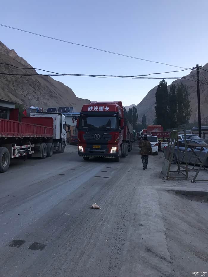 小车基本都返程到叶城县城,还有很多大车在排队!